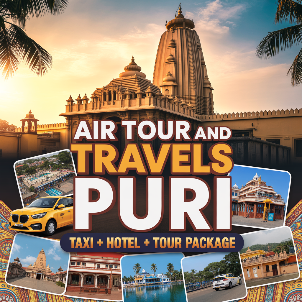 Air Tour and Travels Puri is a trusted travel and tourism company based in Puri, Odisha, offering complete travel solutions including taxi services, hotel bookings, and tour packages. We are dedicated to providing safe, comfortable, and affordable travel experiences for tourists visiting Odisha.